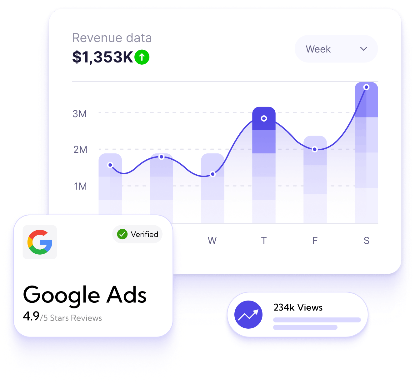 We look at leads, sales, revenue, and ROAS in addition to traffic or clicks. Our job is to support your business growth. And tracking your digital marketing campaign with transparent reporting is how we help.