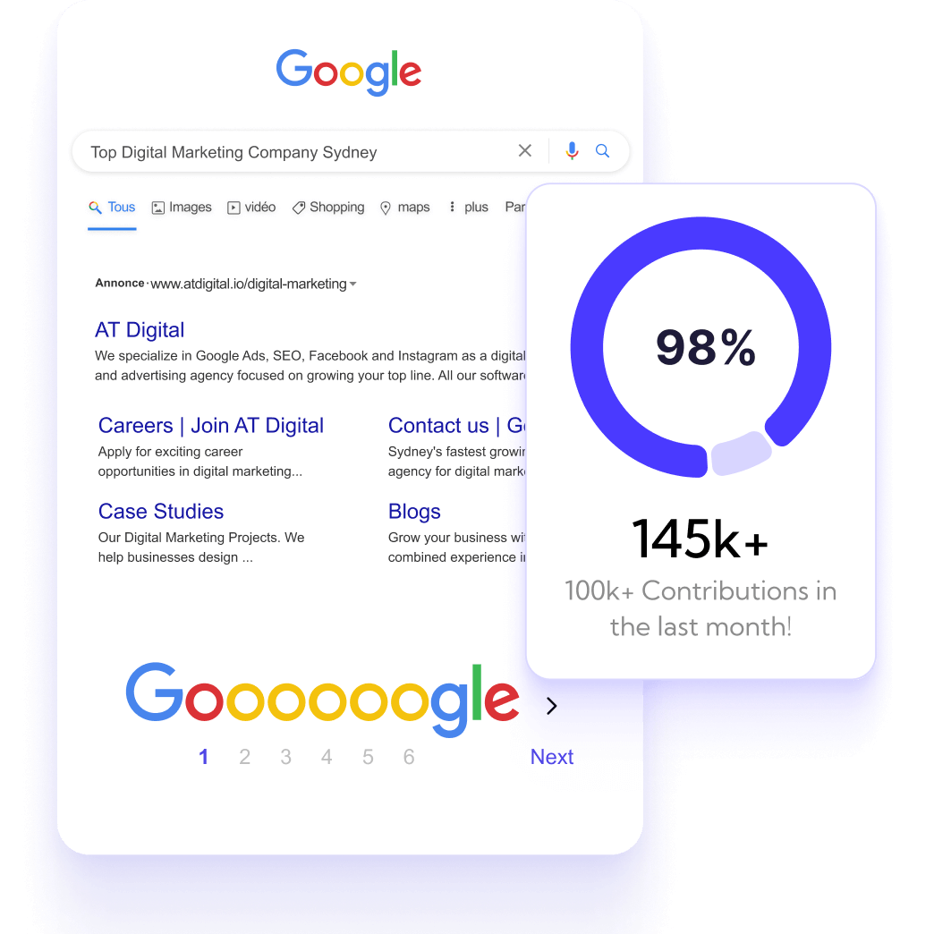 We handle all SEO services in Sydney, be it technical SEO, keyword research, on-page optimisation, content strategy, off-page SEO (link building), and monthly performance reporting.